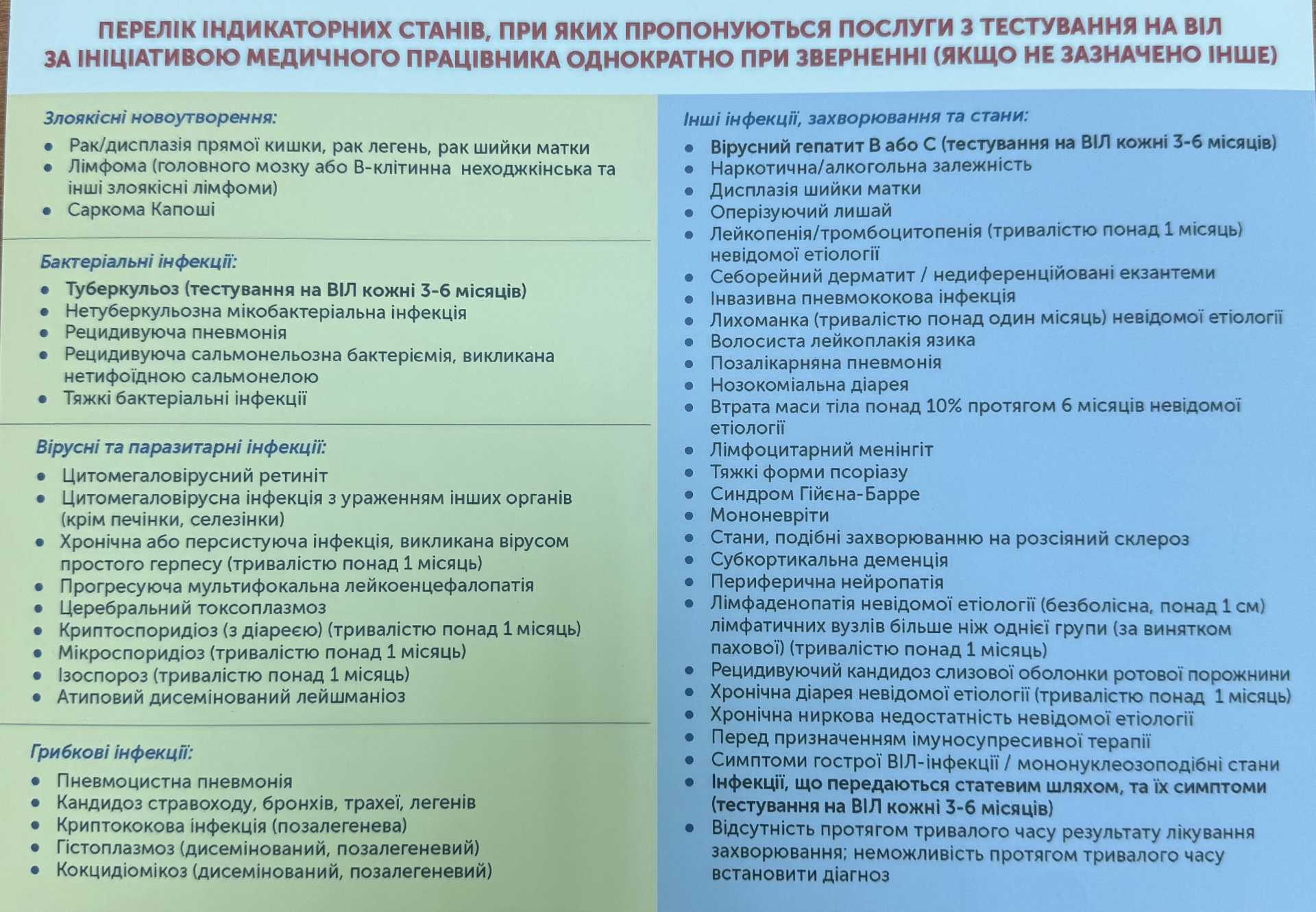 Перед обстеженням сімейний лікар проводить дотестове інформування, бере інформовану згоду, проводить тестування, післятестове консультування та видає довідку про результат.